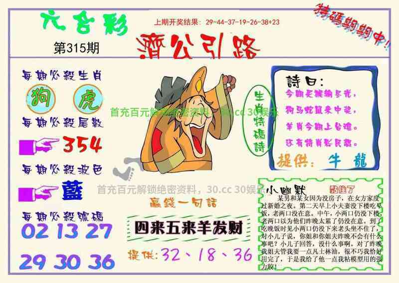 314期:【36码中特】中特=开羊23准